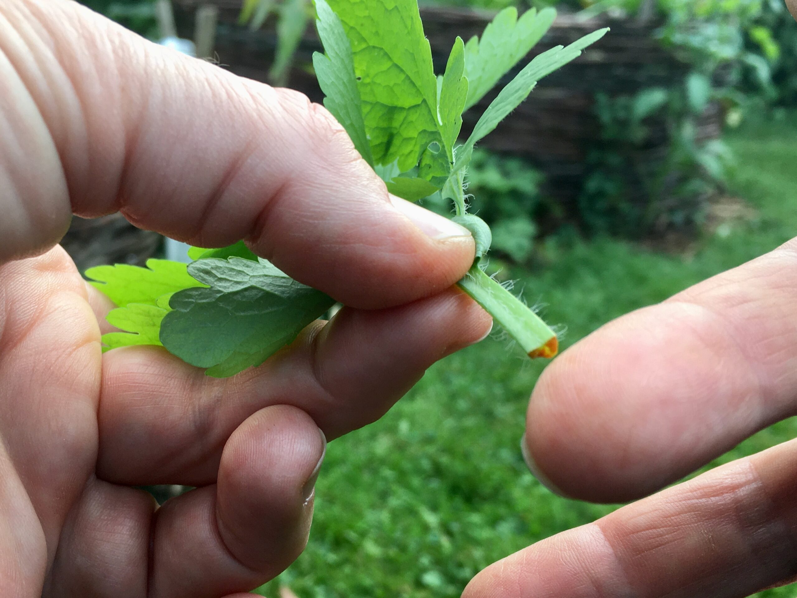 - Verwendet wird der Saft von frischen Pflanzen, idealerweise während der Blütezeit. Dazu wird ein Pflanzenteil abgeschnitten oder abgezwickt. Aus der Schnitt- oder Bruchstelle sickert dann der Saft.